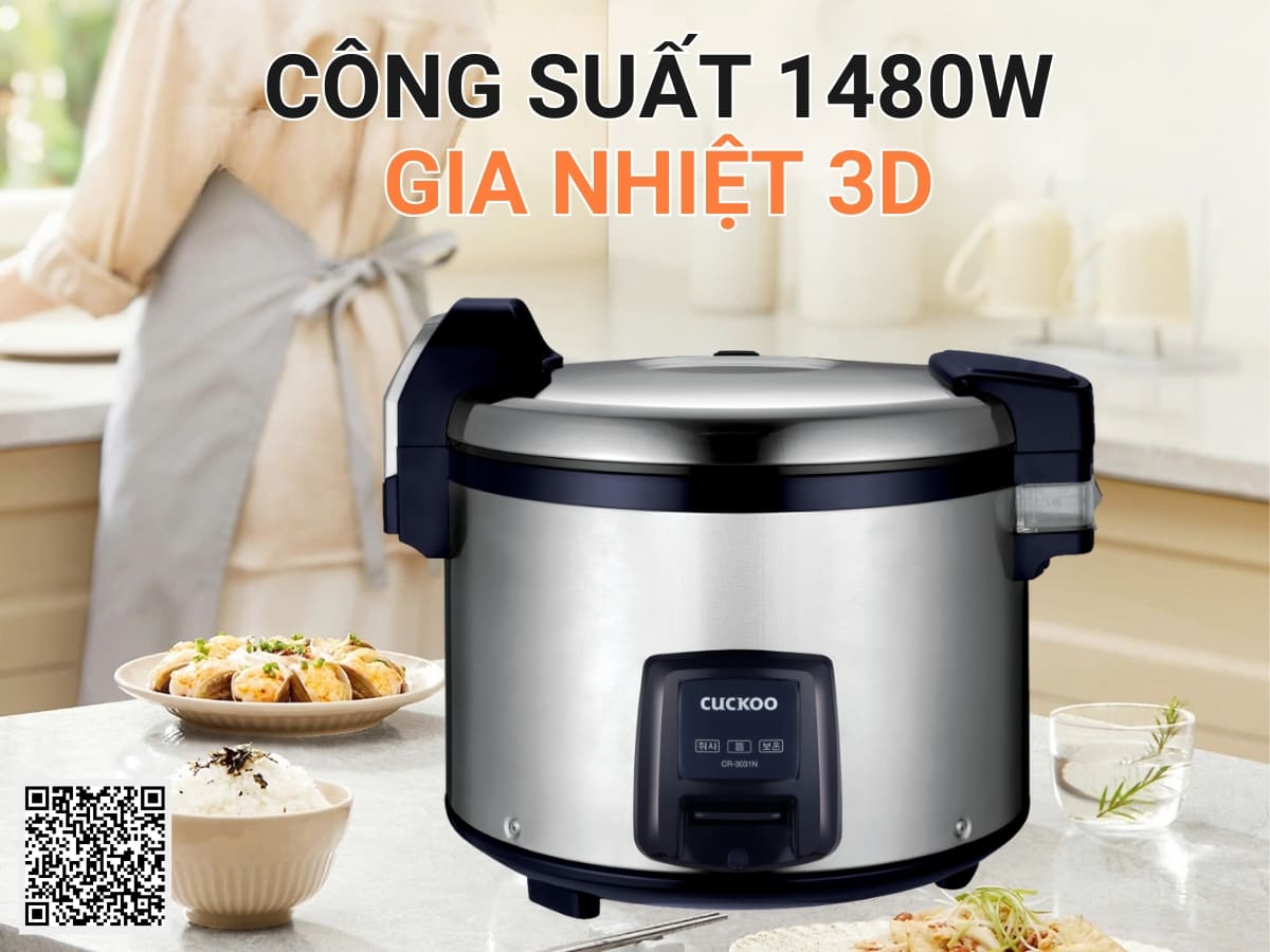 Nồi cơm điện Cuckoo CR-3031N hoạt động mạnh mẽ với công suất 1480W và công nghệ nhiệt 3D giữ nhiệt 3 chiều mang lại hiệu quả nấu cơm nhanh chóng với khối lượng gạo lớn, chín đều và giữ trọn được hương vị thơm ngon của nguyên liệu khi nấu, đảm bảo các chất dinh dưỡng được giữ lại tối ưu nhất.
