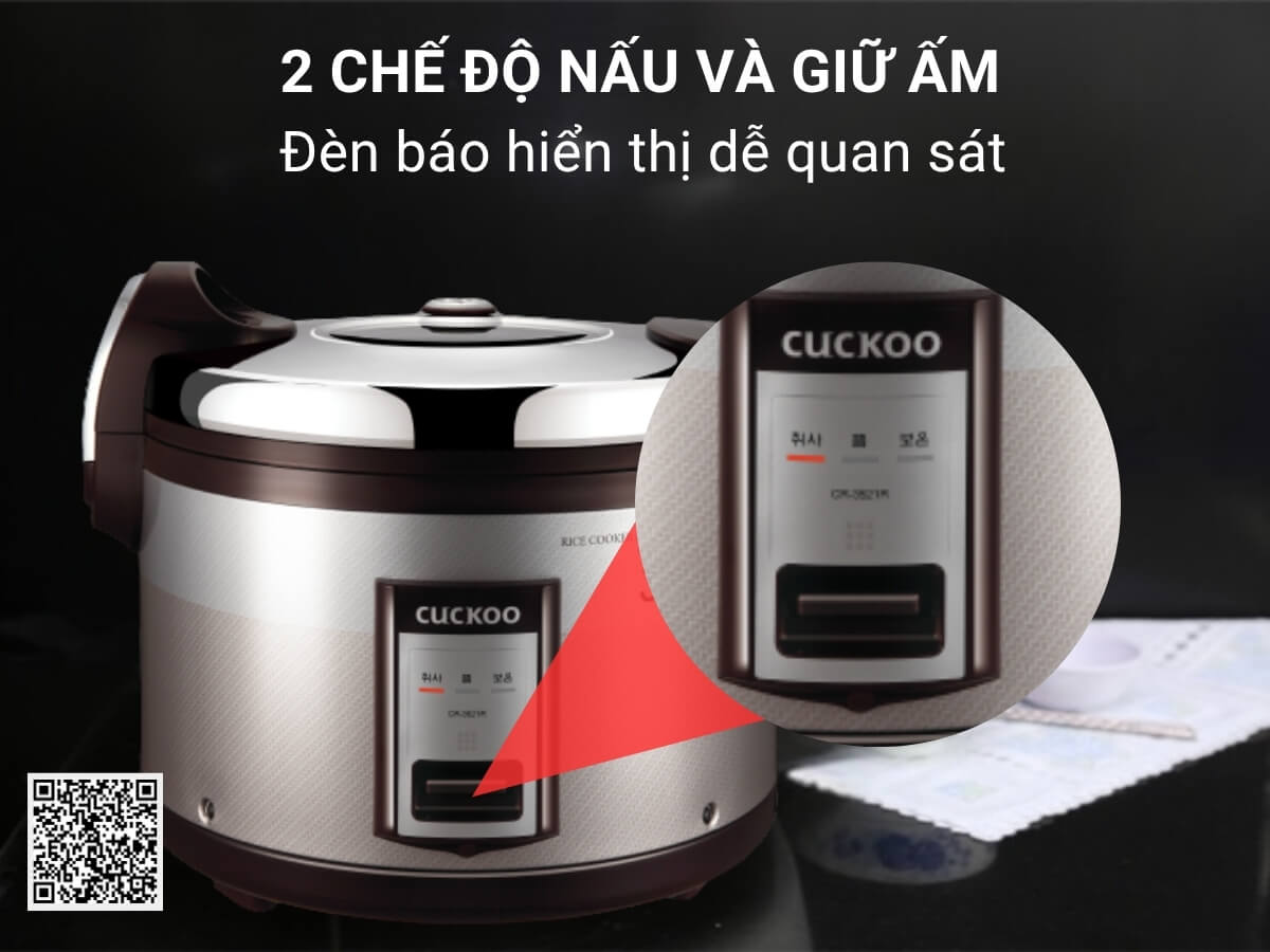 Nồi cơm điện cuckoo CR-3521R cung cấp 2 chế độ: Nấu “Cook” và Giữ ấm “Warm”. Khi cơm được nấu chín, rơ le sẽ tự động ngắt chế độ nấu và chuyển sang chế độ giữ ấm khi nhận biết nhiệt độ bên trong nồi đã ổn định, đảm bảo cơm luôn nóng, ngon để sẵn sàng thưởng thức. 2 chế độ được điều chỉnh bằng nút gạt đơn giản, dễ sử dụng. Cùng với đèn báo hiển thị 2 chức năng giúp bạn dễ quan sát.