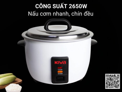 Nồi cơm điện Kiwa MK-30RE với dung tích 7.8 lít, có thể nấu được tối đa 4.5kg gạo, phục vụ cho 20-30 người ăn. Công suất lớn 2650W giúp nấu cơm nhanh chóng, cơm chín tự ngắt và có chế độ giữ ấm cơm tiện dụng. Ruột nồi bằng hợp kim nhôm dẫn nhiệt tốt, thiết kế nắp tháo rời thuận tiện vệ sinh, chùi rửa.