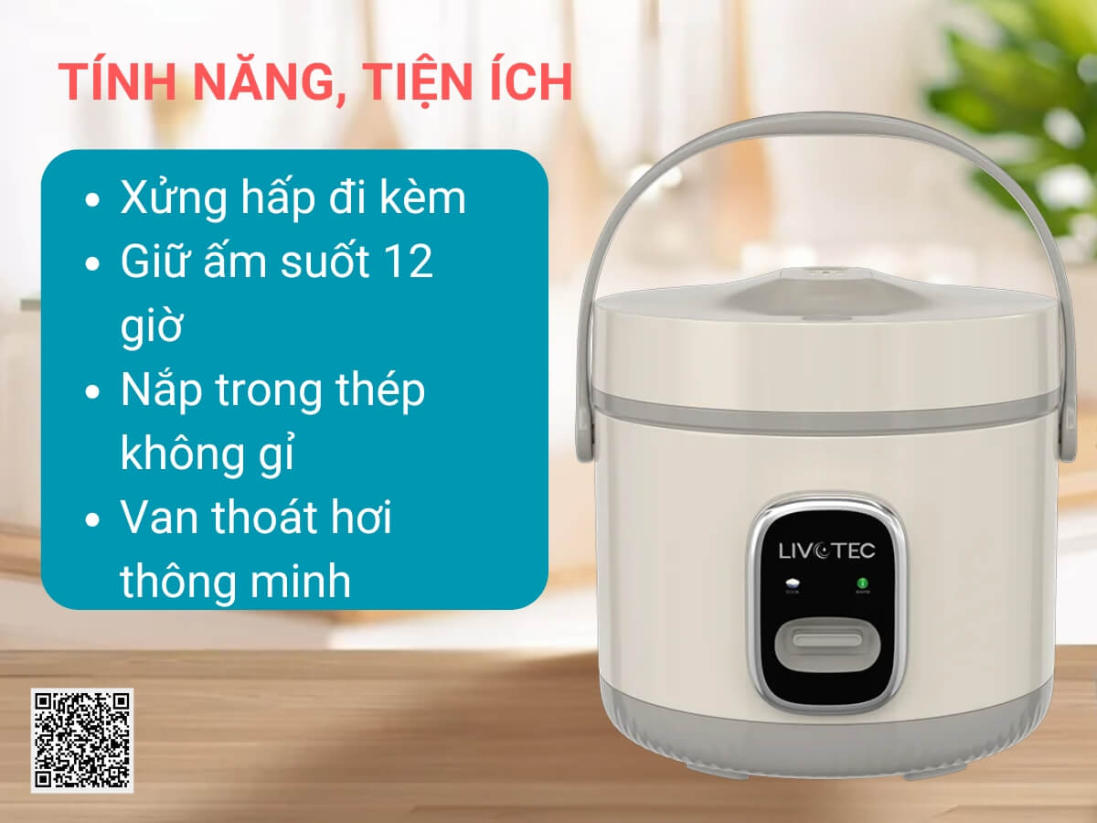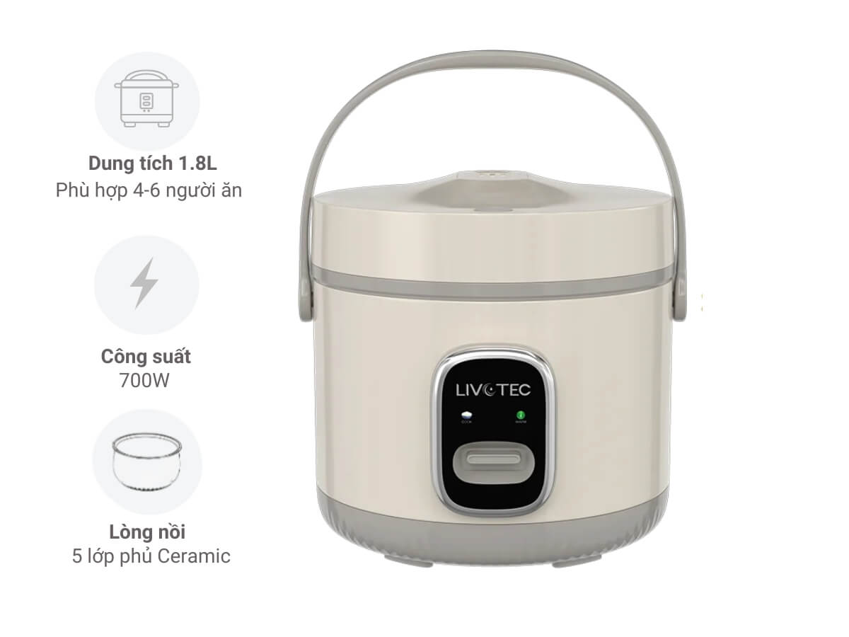 Có dung tích 1.8 lít, là lựa chọn hoàn hảo cho gia đình từ 4-6 thành viên. Sản phẩm là giải pháp nấu cơm tiện lợi, giúp bạn thưởng thức cơm ngon dẻo thơm. Nồi được trang bị công nghệ iCook 3.0 tiên tiến, kết hợp cùng công nghệ UDO° với mâm nhiệt lớn gấp 1.5 lần, giúp cơm chín đều. Đặc biệt, lòng nồi bán niêu phủ Ceramic cao cấp giúp mang đến những bữa cơm chín đều, giữ trọn dinh dưỡng và tuyệt đối an toàn cho sức khỏe. Nồi cơm điện Livotec LRC-6118B, thiết kế tinh tế [caption id="attachment_118736" align="alignnone" width="1200"] Công suất 700W và công nghệ nấu hiện đại[/caption]Nồi cơm điện Livotec LRC-6118B hoạt động với công suất 700W. Sản phẩm được trang bị công nghệ UDO° với mâm nhiệt lớn gấp 1.5 lần (đường kính 22cm, dày 3.4mm), có dạng vòng cung 3D/hình lòng niêu ôm sát lòng nồi, giúp truyền nhiệt nhanh và đều, tạo dòng nhiệt đối lưu. Kết hợp cùng công nghệ iCook 3.0, mô phỏng quá trình nấu 3 giai đoạn (Gia nhiệt – Sôi & ủ – Giữ ấm) giúp hạt cơm nở đều, tơi xốp và giữ trọn vị ngọt tự nhiên. Điều khiển nút gạt với 2 chế độ Nồi cơm điện Livotec LRC-6118B có thiết kế điều khiển cơ đơn giản chỉ với 2 chế độ "Nấu" (Cook) và "Giữ ấm" (Warm), giúp người dùng mọi lứa tuổi đều có thể thao tác một cách dễ dàng và chính xác. Lòng nồi bán niêu phủ Ceramic cao cấp, an toàn tuyệt đối cho sức khỏe [caption id="attachment_118739" align="alignnone" width="1200"] Nhiều tính năng, tiện ích vượt trội khác[/caption]Giá hấp đi kèm: Đi kèm sản phẩm là giá hấp nhựa PP tiện lợi, hỗ trợ tối đa cho việc chế biến các món hấp đa dạng. Giữ ấm suốt 12 giờ: Sau khi nấu xong, nồi có thể tự động giữ ấm cơm dẻo thơm suốt 12 giờ. Nắp trong bằng thép không gỉ, tháo rời: Nắp trong bằng vật liệu chống gỉ (thép không gỉ), tháo rời tiện lợi, giúp việc vệ sinh sau khi sử dụng trở nên nhanh chóng và dễ dàng hơn.Mua Nồi cơm điện Livotec LRC-6118B tại Đà Nẵng ở đâu uy tín giá tốt? Hiện tại, sản phẩm Nồi cơm điện Livotec LRC-6118B đang được bán tại website cũng như Showroom của Bếp Hưng Phú với giá cực kỳ ưu đãi với những chính sách bảo hành từ lỗi của nhà sản xuất. Quý khách hãy gọi trực tiếp vào đường dây nóng để nhận được những tư vấn chi tiết hoặc đặt hàng trên website, Bếp Hưng Phú sẽ gọi xác nhận đơn hàng với quý khách.[caption id="attachment_21117" align="alignnone" width="1200"]