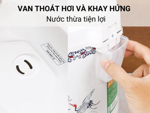 Nồi cơm điện Sharp KS-183TJV-CR còn tích hợp van thoát hơi trên nắp nồi, có tác dụng đảm bảo ổn định hơi nước trong nồi, cho cơm chín ngon hơn. Bên cạnh đó là khay hứng nước thừa giúp nước thừa không rơi ra ngoài làm bẩn nồi và mặt bàn. Khay hứng nước này được thiết kế dễ dàng tháo lắp để tiện lợi vệ sinh, làm sạch.