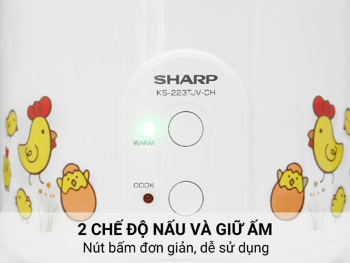 Nồi cơm điện Sharp KS-223TJV-CH bao gồm 2 chế độ nấu “Cook” và giữ ấm “Warm”. Khi cơm được nấu chín, nồi sẽ tự động chuyển sang chế độ giữ ấm, đảm bảo cơm luôn nóng, ngon để sẵn sàng thưởng thức.