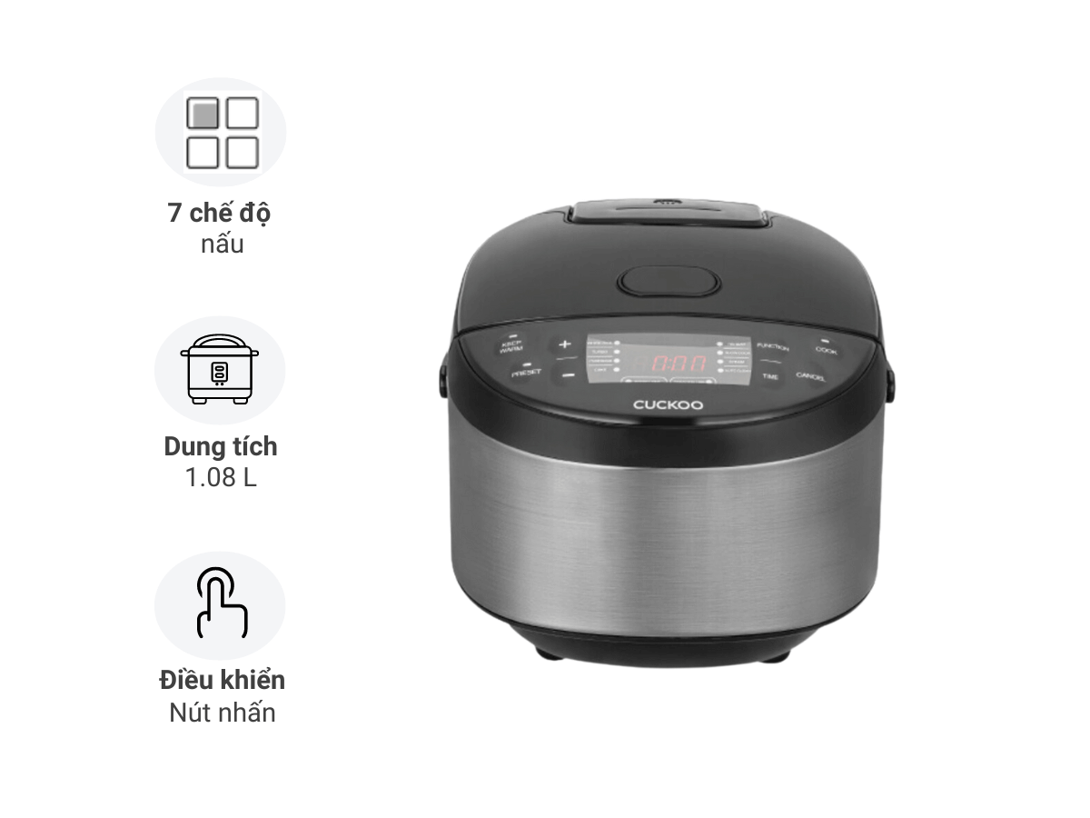 Dung tích 1.08 lít cùng đa dạng chế độ nấu, là lựa chọn lý tưởng cho gia đình 2-4 người. Nồi được trang bị công nghệ nấu áp suất & cao tần, đảm bảo nấu cơm thơm ngon và nấu nhiều món ăn khác một cách nhanh chóng, tiện lợi, tiết kiệm điện và bảo toàn đầy đủ dinh dưỡng trong món ăn. Lòng nồi chất liệu inox bền chắc, chống gỉ sét, đảm bảo an toàn sức khoẻ.[caption id="attachment_92991" align="alignnone" width="2560"] Nồi cơm áp suất cao tần Cuchen CRT-UPDS0670W dung tích 1.08 lít, thiết kế sang trọng[/caption]Nồi cơm áp suất cao tần Cuchen CRT-UPDS0670W gây ấn tượng bởi thiết kế khá tối giản nhưng không kém phần sang trọng, hiện đại. Thân nồi màu trắng chủ đạo kết hợp màu xám bạc, vừa thanh lịch, vừa dễ dàng phù hợp với mọi không gian bếp. Hệ thống điều khiển cảm ứng với màn hình LED trắng tạo điểm nhấn đẹp mắt cho sản phẩm cũng như không gian sử dụng.Nồi có dung tích 1.08 lít, có thể phục vụ tốt nhu cầu sử dụng cho bữa ăn gia đình 2 - 4 thành viên. Với chiếc nồi đa năng và dung tích lớn này, bạn có thể thoải mái nấu cơm hoặc chế biến đa dạng nhiều món ăn khác cho gia đình. Công nghệ nấu áp suất & cao tần tiên tiến Nồi cơm điện Cuchen CRT-UPDS0670W được trang bị 2 công nghệ nấu áp suất & nấu cao tần tiên tiến, bạn có thể lựa chọn linh hoạt giữa 2 công nghệ nấu để dễ dàng nấu nướng nhiều món đa dạng cho gia đình.- Công nghệ nấu áp suất với mức áp suất cực cao, cung cấp nhiệt độ cực đại trong lòng nồi và tạo môi trường kín không cho hơi nóng thoát ra ngoài. Nhờ đó món ăn được chín mềm nhanh chóng, chín kỹ và giữ được trọn vẹn dinh dưỡng vốn có nhờ thiết kế nồi kín. Bạn sẽ có những bữa ăn được nấu nhanh chóng và đầy dinh dưỡng cho gia đình.- Công nghệ nấu cao tần với cơ chế đun nóng trực tiếp (lòng nồi được làm nóng trực tiếp, không qua mâm nhiệt), giúp cơm chín nhanh hơn, đặc biệt là nhiệt lượng được tỏa đều khắp nồi, giúp hạt gạo chín đều từ trong ra ngoài, tạo ra chất lượng cơm chín mềm và hương vị thơm ngon mà không bị nhão hay bung nát. Đa dạng chế độ nấu tự động tiện dụng [caption id="attachment_92637" align="alignnone" width="1200"] Điều khiển cảm ứng, màn hình LED[/caption]Nồi cơm điện Cuchen CRT-UPDS0670W được trang bị hệ thống điều khiển cảm ứng có màn hình LED hiển thị, giúp tăng tính hiện đại và tiện lợi cho sản phẩm.Bảng điều khiển cảm ứng hiện đại, thao tác nhanh và nhạy. Bạn chỉ cần chạm nhẹ ngón tay là có thể chọn các chức năng, các chế độ nấu, hẹn giờ… một cách nhanh chóng và tiện lợi. Bên cạnh đó là màn hình LED trắng được thiết kế nổi bật, chất lượng hiển thị rõ ràng, sắc nét… giúp bạn dễ dàng quan sát và điều khiển nồi một cách chính xác. Lòng nồi chất liệu inox 316Ti cao cấp, bền chắc [caption id="attachment_92639" align="alignnone" width="1200"] Chức năng tự động làm sạch bằng hơi nước[/caption]Nồi cơm điện Cuchen CRT-UPDS0670W còn có chức năng tự động làm sạch bằng hơi nước. Chọn chức năng này, hệ thống sẽ tự động phun hơi nước để làm sạch nồi và diệt khuẩn, đồng thời khử mùi khi nấu nhiều món khác nhau trong nồi. Bạn sẽ không cần phải mất nhiều thời gian để lau chùi, vệ sinh nồi sau mỗi lần sử dụng nữa.  Tính năng, tiện ích khác [caption id="attachment_92641" align="alignnone" width="1200"] Nồi cơm áp suất cao tần Cuchen CRT-UPDS0670W dung tích 1.08 lít cùng đa dạng chế độ nấu, là lựa chọn lý tưởng cho gia đình 2-4 người[/caption][caption id="attachment_92642" align="alignnone" width="1200"] Showroom Bếp Hưng Phú[/caption]Ngoài ra quý khách hàng có thể tham khảo thêm các sản phẩm Siêu thị Bếp Hưng Phú để nhận giá ưu đãi và được tư vấn trực tiếp.
