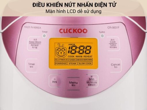 Nồi cơm điện tử Cuckoo CR-0631F được trang bị hệ thống điều khiển nút nhấn điện tử và màn hình LCD. Các chức năng được thể hiện rõ ràng, dễ đọc, dễ thao tác. Cùng với màn hình LCD hiển thị rõ ràng, sắc nét… giúp bạn dễ dàng theo dõi thông tin hoạt động của nồi.