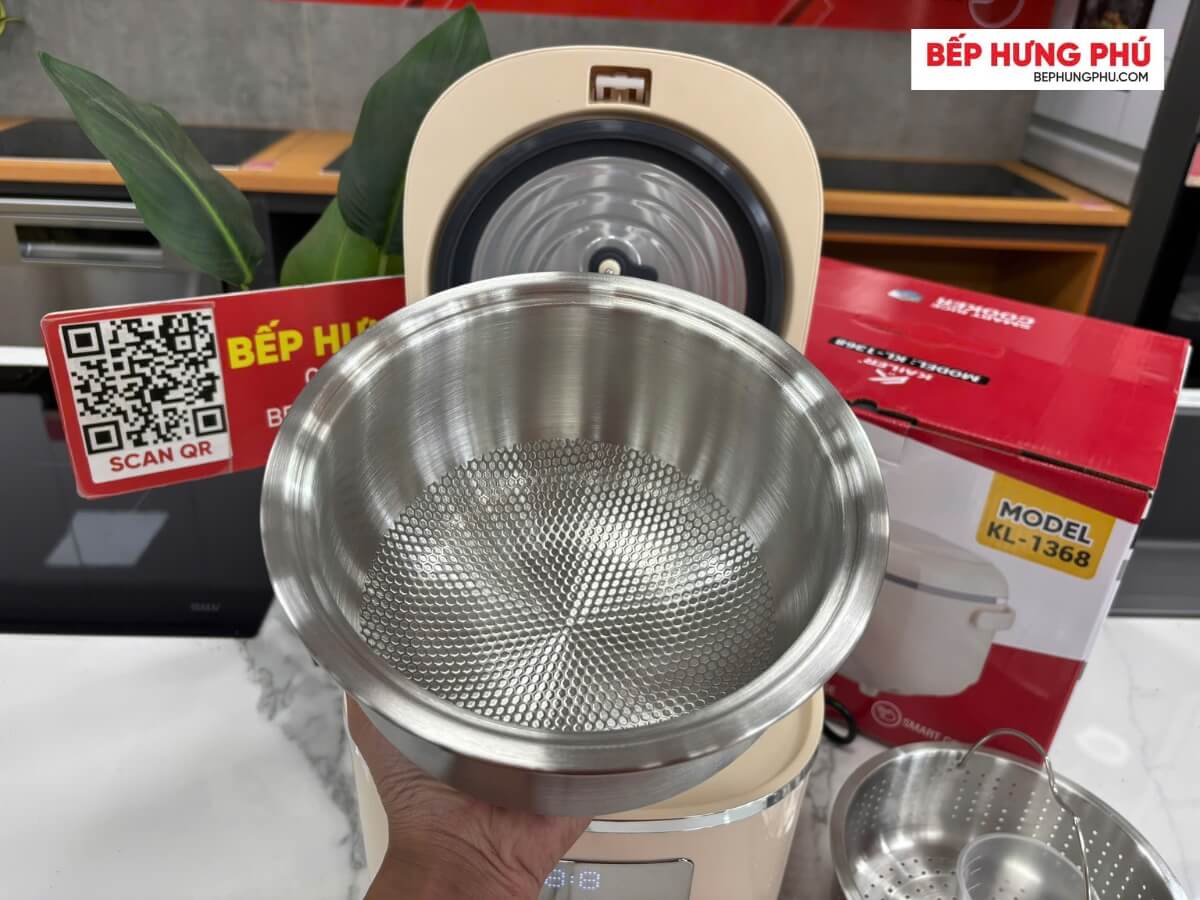 Nồi cơm điện tử Kailer KL-1368 còn gây ấn tượng bởi sở hữu công nghệ nấu cơm tách đường hiện đại. Nồi được tích hợp một xửng hấp bằng inox và được thiết kế với các lỗ nhỏ. Khi đun sôi ở nhiệt độ cao, nước cơm và tinh bột gạo lắng đọng sẽ được xả trôi xuống lòng nồi thông qua các lỗ nhỏ này. Phương pháp nấu cơm này có thể giảm lượng đường trong cơm đến 33,6%. Công nghệ nấu này có chức năng giảm lượng đường nhưng vẫn đảm bảo giữ được hương vị thơm ngon của cơm, đặc biệt lý tưởng cho những người bị tiểu đường hay những người đang ăn kiêng giảm cân.