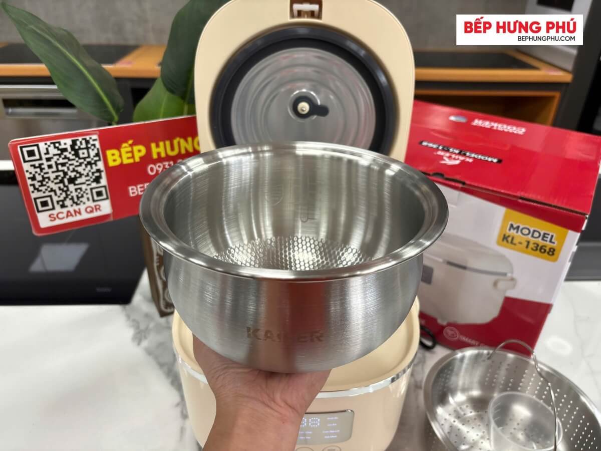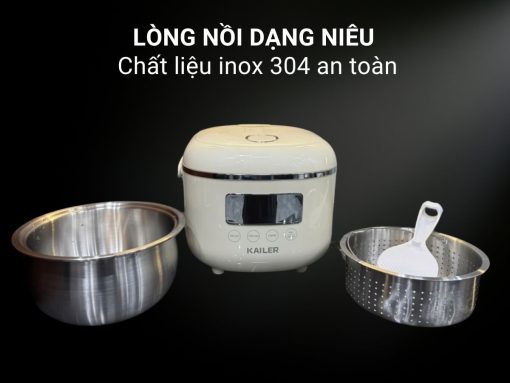 Nồi cơm điện tử Kailer KL-1368 trang bị lòng nồi dạng niêu độc đáo, cho khả năng truyền nhiệt tốt hơn, giúp nấu ăn ngon hơn. Đặc biệt là chất liệu inox 304 cao cấp, chống gỉ sét, chống ăn mòn, khả năng chống dính tự nhiên, không sản sinh ra chất gây hại khi đun nấu ở nhiệt độ cao, đảm bảo an toàn sức khoẻ.