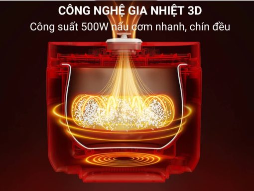 Đặc biệt là công nghệ gia nhiệt 3D tạo luồng nhiệt luân chuyển đều khắp từ phía trên, phía đáy nồi và xung quanh thành nồi, giúp hạt gạo chín đều và chín kỹ.