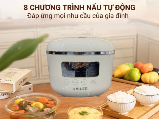 Nồi cơm điện tử Kailer KL-1368 được trang bị 8 chương trình nấu tự động, giúp bạn dễ dàng chế biến được nhiều món ngon cho gia đình. Ngoài nấu cơm thông thường còn có thể nấu cơm cháy, nấu súp, cháo, hầm…