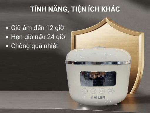 Nồi cơm điện tử Kailer KL-1368 thiết kế tối giản, tinh tế, gam màu trắng kem nhã nhặn, dễ dàng kết hợp với mọi không gian bếp. Dung tích 1.2 lít phù hợp cho gia đình 2 – 4 người. Với 8 chương trình nấu tự động, giúp bạn dễ dàng chế biến được nhiều món ngon cho gia đình. Ngoài nấu cơm trắng thông thường còn có thể nấu cháo, súp, hầm, ủ sữa chua… đem đến sự tiện dụng tối đa. Đặc biệt là có tính năng nấu cơm tách đường độc đáo, lý tưởng cho người tiểu đường hoặc ăn kiêng giảm cân. Lòng nồi dạng niêu bằng inox 304 đảm bảo an toàn sức khoẻ. Chức năng giữ ấm đến 12 tiếng và hẹn giờ đến 24 tiếng vô cùng tiện dụng. Hệ thống bảng điều khiển cảm ứng màu tiếng Việt sử dụng dễ dàng, tiện lợi.