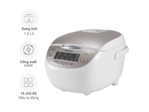Nồi cơm điện tử Panasonic SR-CP108NRAM thiết kế tối giản, tinh tế, gam màu trắng dễ dàng kết hợp với mọi không gian bếp. Dung tích 1.0 lít phù hợp cho gia đình 2-4 người. Với 16 chế độ nấu tự động, giúp bạn dễ dàng chế biến được nhiều món ngon cho gia đình. Ngoài nấu cơm trắng thông thường còn có thể nấu cơm gạo lứt, nấu cháo, súp, xôi, hấp, làm bánh… đem đến sự tiện dụng tối đa. Công nghệ gia nhiệt 3D cùng công suất 640W giúp nấu cơm chín đều, nhanh chóng. Lòng nồi 6 lớp phủ chống dính cao cấp, an toàn. Hệ thống bảng điều khiển nút nhấn điện tử kết hợp màn hình LED sử dụng dễ dàng, tiện lợi và tăng thêm vẻ hiện đại cho sản phẩm. Ngoài ra còn có nhiều tiện ích như: hẹn giờ đến 24 giờ, giữ ấm đến 12 giờ.