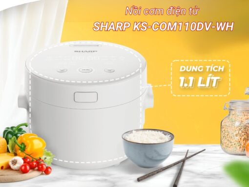 Nồi cơm điện tử Sharp KS-COM110DV-WH có dung tích 1.1 lít phù hợp cho 2-3 người ăn