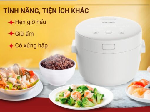 Nồi cơm điện tử Sharp KS-COM110DV-WH được trang bị 12 chế độ nấu tự động, giúp bạn dễ dàng chế biến nhiều món ngon cho gia đình.