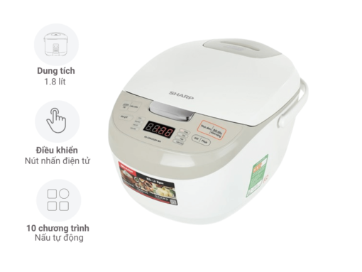 Nồi cơm điện tử Sharp KS-COM191EV-WH dung tích 1.8 lít, thiết kế đẹp mắt