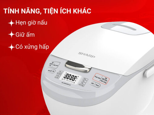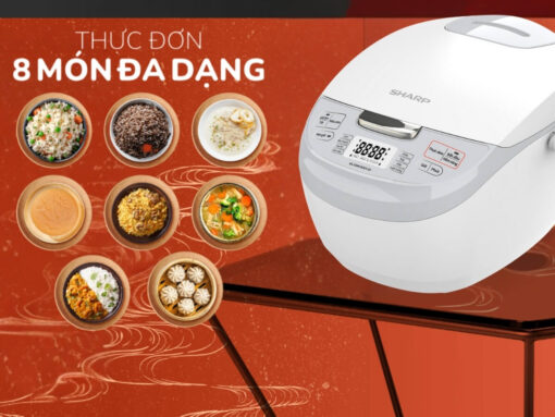 Nồi cơm điện tử Sharp KS-COM192EV-GY được trang bị 8 chế độ nấu tự động, giúp bạn dễ dàng chế biến nhiều món ngon cho gia đình.