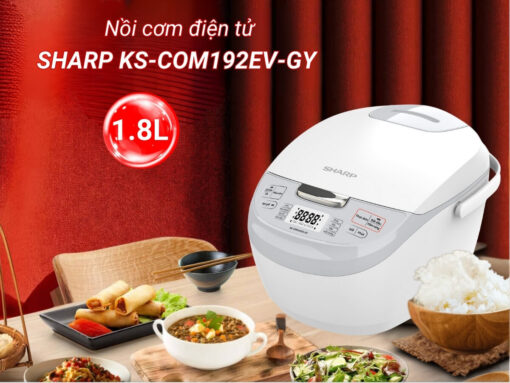 Nồi cơm điện tử Sharp KS-COM192EV-GY dung tích 1.8 lít, thiết kế sang trọng