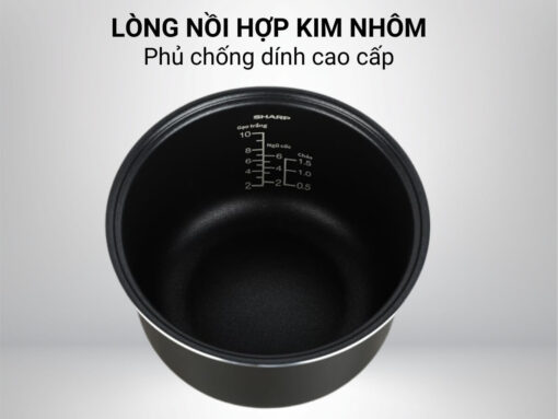 Nồi cơm điện tử Sharp KS-COM194EV-BK có phần lòng nồi được làm từ hợp kim nhôm cao cấp, dày dặn, đảm bảo độ chắc chắn và bền bỉ.