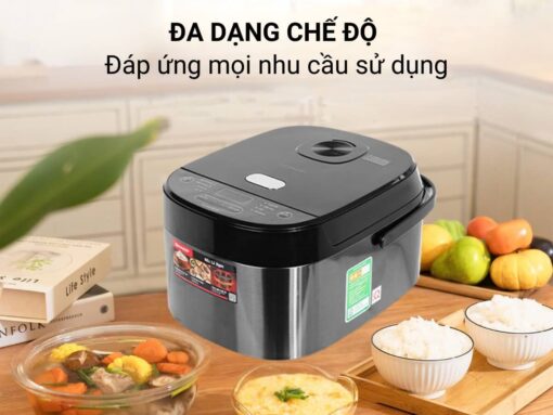 Đặc biệt, lòng nồi được phủ lớp chống dính cao cấp, có thể chịu được nhiệt độ cao và không bị bong tróc hay ăn mòn. Bạn có thể thoải mái nấu cơm và những món ăn khác mà không lo bị bám dính nồi, và việc vệ sinh nồi sau khi nấu cũng rất dễ dàng.