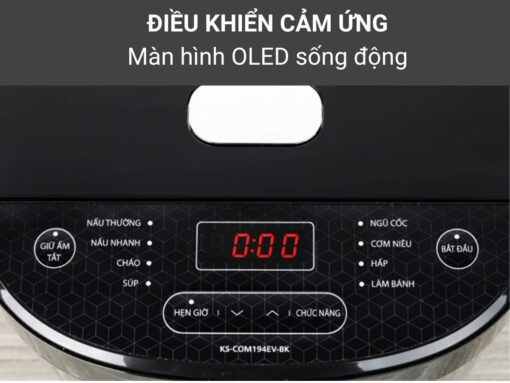 Nồi cơm điện tử Sharp KS-COM194EV-BK được trang bị hệ thống điều khiển nút nhấn điện tử và màn hình LCD. Các chức năng được thể hiện rõ ràng, dễ đọc, dễ thao tác, giao diện tiếng Việt phù hợp với mọi người dùng. Cùng với màn hình LCD hiển thị rõ ràng, sắc nét… giúp bạn dễ dàng theo dõi thông tin hoạt động của nồi.