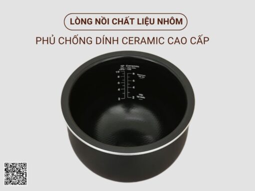 Đặc biệt, lòng nồi được phủ chống dính Ceramic cao cấp, có thể chịu được nhiệt độ cao và không bị bong tróc hay ăn mòn. Bạn có thể thoải mái nấu cơm và những món ăn khác mà không lo bị bám dính nồi, và việc vệ sinh nồi sau khi nấu cũng rất dễ dàng.