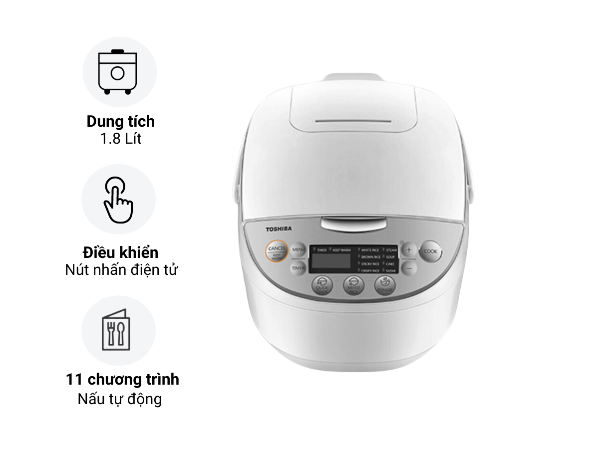 Nồi cơm điện tử Toshiba RC-18DH2PV(W) dung tích 1.8 lít, thiết kế sang trọng