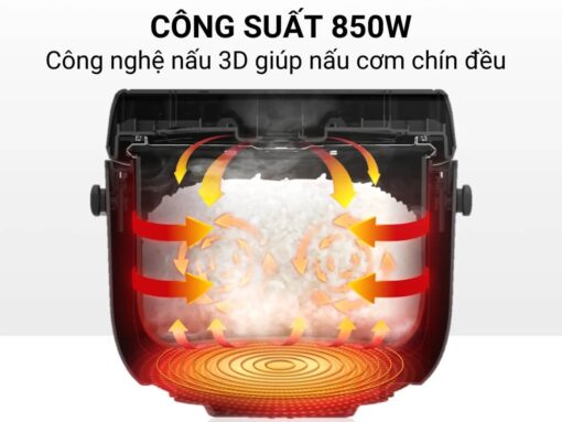 Công suất 850W, công nghệ nấu 3D giúp nấu cơm chín đều, thơm ngon