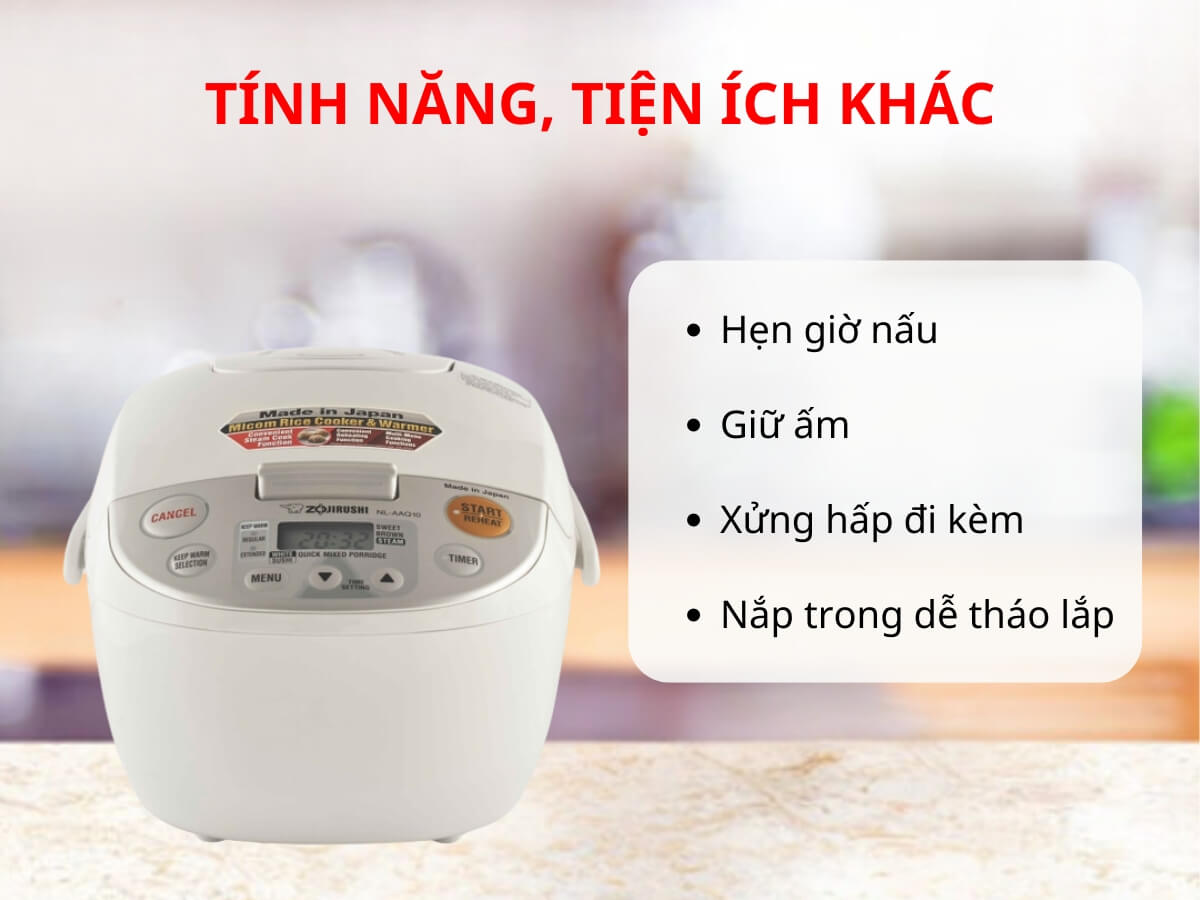 Nồi cơm điện tử Zojirushi NL-AAQ10-CA được trang bị đa dạng chế độ nấu tự động, giúp bạn dễ dàng chế biến được nhiều món ngon cho gia đình.