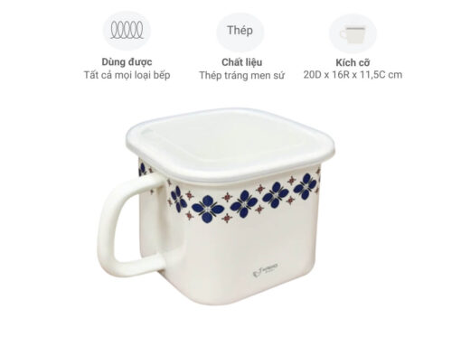 – Nồi dáng vuông size 16cm, cao 11,5cm, dung tích 1.6 lít, phù hợp dùng làm nồi nấu canh, nấu mì, nồi ăn lẩu mini, hoặc có thể dùng làm hộp đựng thực phẩm trong tủ lạnh…