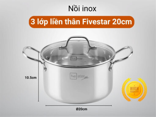 Nồi inox 3 lớp liền thân Fivestar 20cm đường kính 20cm, cao 10.5cm, dung tích 3 lít