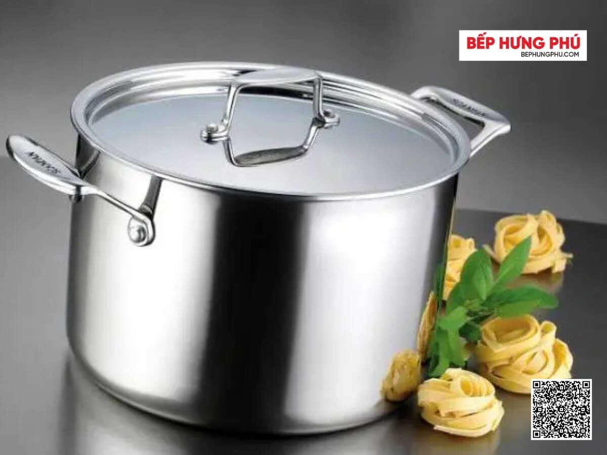 Nồi inox 5 lớp liền thân Scanpan Fusion 24cm được làm từ inox 18/10 cao cấp, an toàn cho thực phẩm, chống ăn mòn và giữ độ sáng bóng lâu dài. Cấu tạo đáy 5 lớp liền thân giúp loại bỏ hoàn toàn các điểm nóng, đảm bảo nhiệt phân bổ đều, thức ăn chín đều và giữ nhiệt tốt hơn nồi thông thường. Công nghệ đúc áp lực đặc biệt giúp nồi không cong vênh, bền chắc theo thời gian.