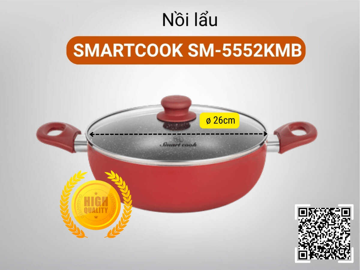 Nồi lẩu Smartcook SM-5552KMB đường kính 26cm lý tưởng cho các bữa tiệc lẩu của gia đình. Chất liệu hợp kim nhôm phủ chống dính, an toàn và dễ vệ sinh. Đặc biệt là đáy bắt từ tốt, có thể dùng trên mọi loại bếp kể cả bếp từ.