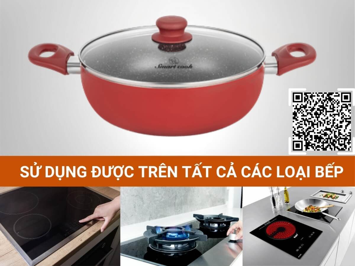 - Dùng được cho tất cả các loại bếp: bếp gas, bếp hồng ngoại, bếp từ