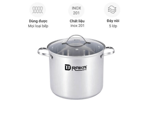 Nồi luộc gà Raika RKN-32 dung tích lớn 15 lít thuận tiện để luộc gà, hầm, nấu súp với lượng lớn cho gia đình đông người. Chất liệu inox 201 chất lượng tốt, chống gỉ, chống ăn mòn, đáy 5 lớp dẫn nhiệt tốt và giữ nhiệt lâu, giúp nấu ăn ngon hơn và đảm bảo an toàn sức khoẻ. Đặc biệt là bề mặt sáng bóng sang trọng và dễ vệ sinh, chùi rửa, có thể dùng trên mọi loại bếp kể cả bếp từ.