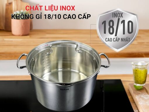 Nồi luộc gà Tefal Duetto Plus G7196455 được làm từ chất liệu inox không gỉ 18/10 cao cấp với độ bền vượt trội. Inox 18/10 là hợp kim của 72% thép, 18% crôm và 10% niken. Thép có đặc tính cứng chắc, bền bỉ, đảm bảo độ bền, chịu nhiệt và chịu lực cho chảo. Crôm làm cho chảo không gỉ sét và niken giúp chống axit và tăng thêm độ bóng cho bề mặt. Các thành phần đảm bảo các đặc tính sử dụng tốt nhất và có thời hạn sử dụng gần như không giới hạn.