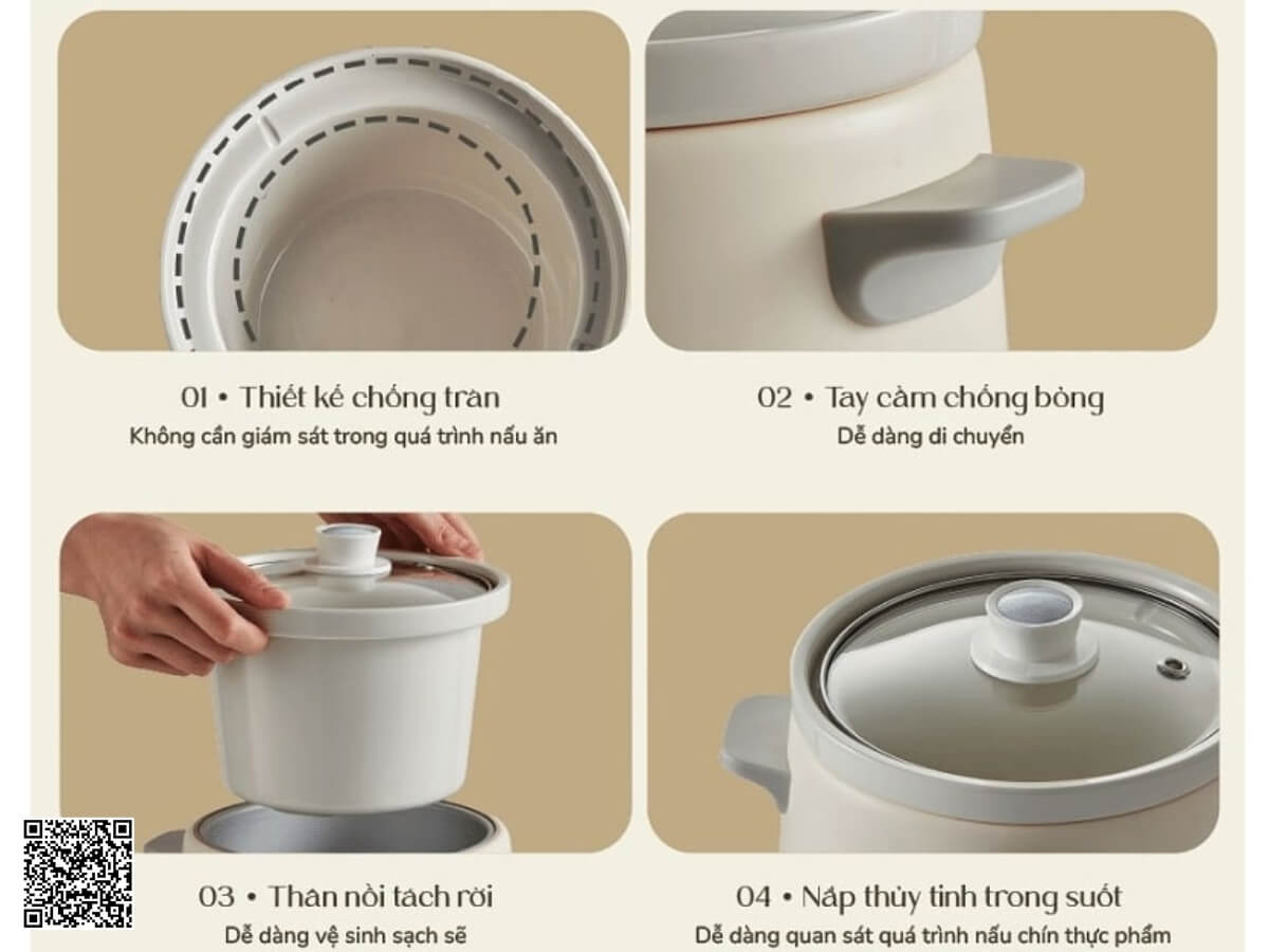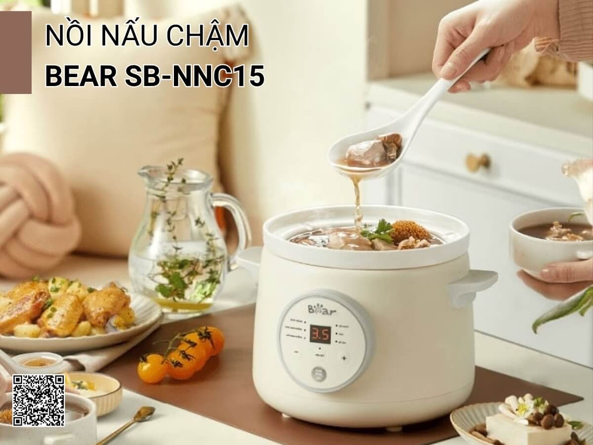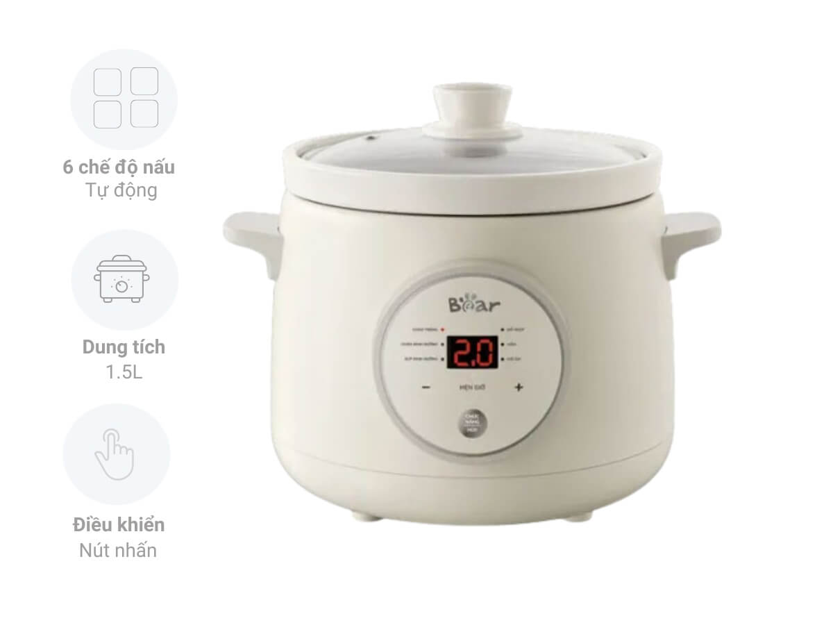 Nồi nấu chậm Bear SB-NNC15 dung tích 1,5 lít, thiết kế thông minh