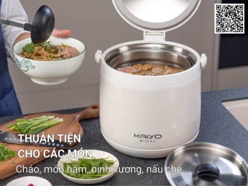 Nồi ủ Kaiyo KTC30W là một dụng cụ nấu ăn vô cùng hữu ích, giúp bạn nấu các món ninh, hầm, nấu cháo dễ dàng, tiết kiệm thời gian nấu mà không tốn nhiều gas, điện. Thiết kế nồi ủ đặc biệt cùng với nguyên lý giữ nhiệt chân không giúp nấu nhừ và ủ nóng thức ăn cả ngày, rất tiện lợi, không cần phải canh giữ bếp lúc nấu, không cần hâm nóng lại, đặc biệt là bảo toàn được tối đa dinh dưỡng trong thực phẩm. Dung tích nồi 3 lít phù hợp dùng cho gia đình 2-4 người. Đặc biệt, nồi có thể dùng trên mọi loại bếp, kể cả bếp từ.