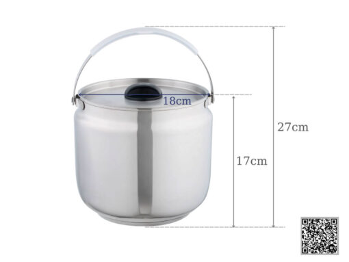 - Ruột nồi có kích thước: Đường kính miệng nồi 18cm, cao 17cm – Dung tích 4,5 lít thích hợp dùng cho gia đình 4-6 người