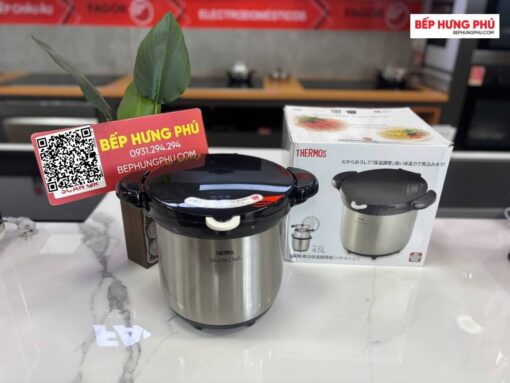 Nồi ủ Thermos KBG-4500-CS là một dụng cụ nấu ăn vô cùng hữu ích, giúp bạn nấu các món ninh, hầm, nấu cháo dễ dàng, tiết kiệm thời gian nấu mà không tốn gas, điện. Thiết kế nồi ủ đặc biệt cùng với nguyên lý giữ nhiệt chân không giúp nấu nhừ và ủ nóng thức ăn cả ngày, rất tiện lợi, không cần phải canh giữ bếp lúc nấu, không cần hâm nóng lại. Dung tích nồi 4,5 lít phù hợp dùng cho gia đình 4-6 người. Đặc biệt, nồi có thể dùng trên mọi loại bếp, kể cả bếp từ.