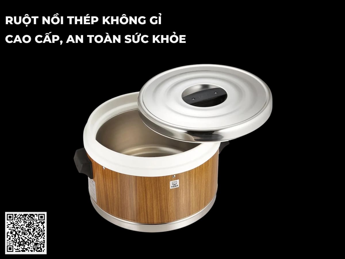 - Ruột nồi thép không gỉ cao cấp, an toàn sức khỏe, bền chắc và dễ vệ sinh