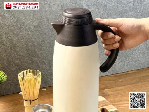 – Nhấn nút trên nắp bình để rót nước dễ dàng, và thả tay ra để khoá nắp bình, đảm bảo an toàn cho quá trình sử dụng.