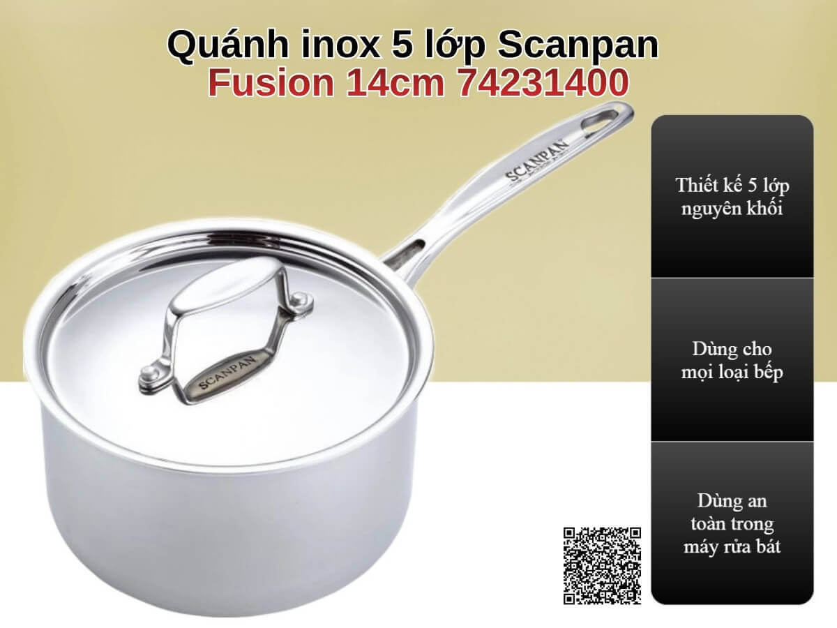 Tổng quan về quánh inox 5 lớp liền thân Scanpan Fusion 14cm 74231400