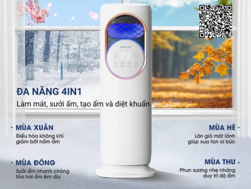 Quạt điều hòa Kalite KSA368 là một thiết bị hiện đại, đa năng, có thể làm mát, sưởi ấm, tạo ẩm và diệt khuẩn, sử dụng được 4 mùa