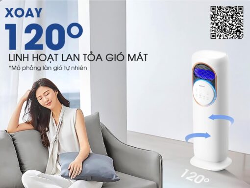Quạt điều hòa Kalite KSA368 có khả năng xoay 120°, giúp mở rộng phạm vi làm mát mà không tập trung vào một điểm cố định, lan tỏa hơi gió nhẹ nhàng, mang đến cảm giác dễ chịu mà không gây khô da hay lạnh buốt.