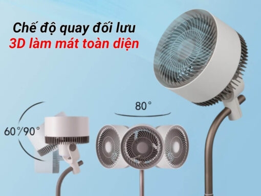 Mi-Lux F6 Pro có chế độ quay 3D đối lưu (quay trái – phải 80° và quay lên xuống 60-90°), phân phối không khí mát đều khắp mọi ngóc ngách, tạo cảm giác thoáng đãng, dễ chịu dù ở bất kỳ vị trí nào trong căn phòng.