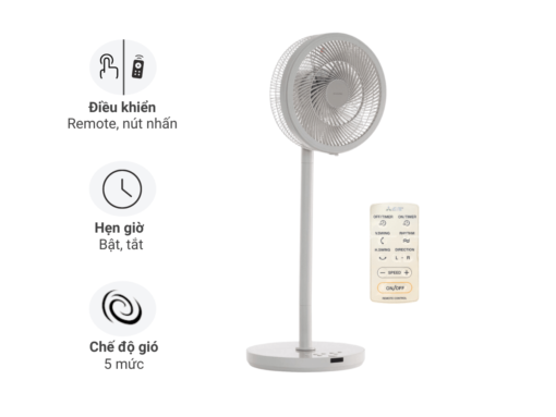 Cùng với 5 tuỳ chọn điều chỉnh cấp độ gió, giúp bạn linh hoạt thay đổi cấp độ gió mạnh nhẹ tuỳ theo nhu cầu sử dụng. Có thể điều chỉnh bằng hệ thống điều khiển nút nhấn trên đế quạt, hoặc điều khiển từ xa bằng remote.