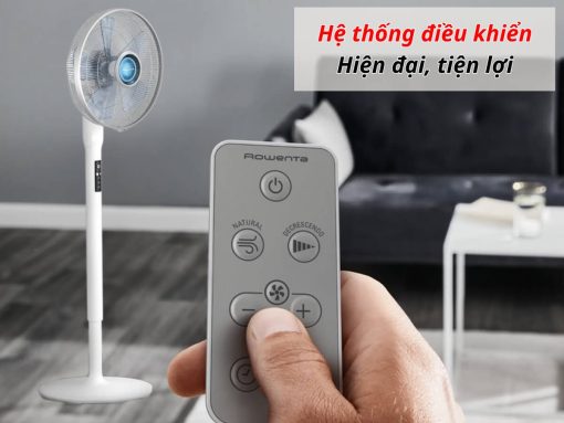 Hệ thống điều khiển trên quạt đứng Rowenta VU5870 rất hiện đại và tiện lợi, bao gồm các phím cảm ứng trên thân quạt, thao tác chạm là có thể điều chỉnh mọi hoạt động của quạt. Và remote giúp bạn dễ dàng thực hiện mọi điều khiển quạt từ xa mà không cần phải thực hiện trực tiếp trên quạt, vô cùng đơn giản và tiện lợi.
