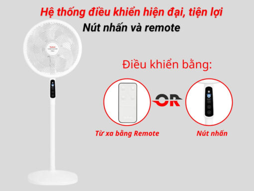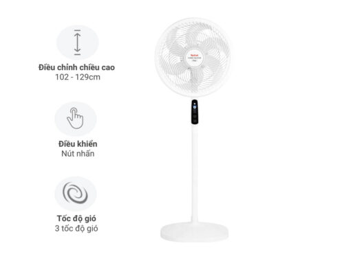 Đặc biệt, quạt có thể điều chỉnh độ cao linh hoạt từ 102-129cm, đáp ứng đa dạng nhu cầu làm mát và phù hợp với nhiều không gian sử dụng khác nhau.