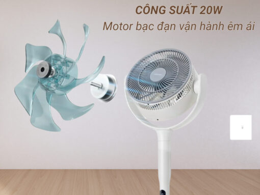 Công suất 20W, motor bạc đạn vận hành êm ái