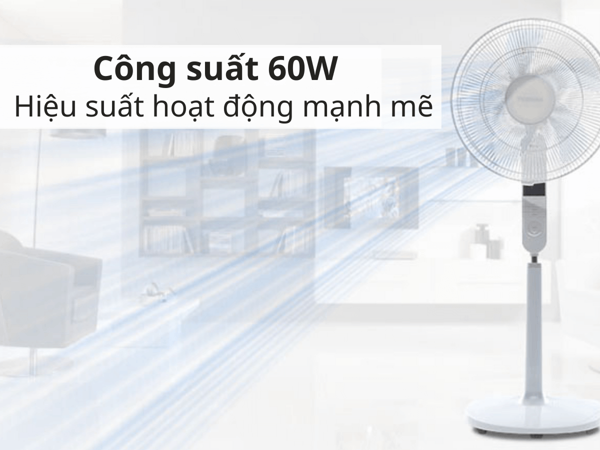 Quạt đứng Toshiba F-LSA20(W)VN có công suất 60W đảm bảo hiệu suất hoạt động mạnh mẽ, khởi động nhanh và làm mát hiệu quả.