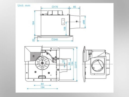 Quạt hút thông gió Panasonic FV-17CU9 được thiết kế lắp âm trần gọn gàng với kích thước lắp đặt 177x177mm, dễ dàng phù hợp vối nhiều không gian nhà tắm, nhà bếp, phòng ngủ, nhà vệ sinh…  mà không chiếm nhiều diện tích. Ống dẫn có đường kính Ø100mm để thoát không khí tù đọng trong phòng ra ngoài.
