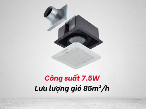 Quạt hút âm trần Panasonic FV-17CU9 được trang bị công suất 7.5W, với lưu lượng gió 85m³/h cùng độ ồn thấp, hoạt động êm ái, dễ chịu, giúp không gian của bạn luôn được thông thoáng, hạn chế mùi hôi, ẩm mốc hay nóng bức vào mùa hè.